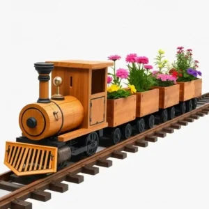 Atölyemizin en güzel tasarımlarından tren saksımız, bahçenize şıklık ve zerafet katacaktır.